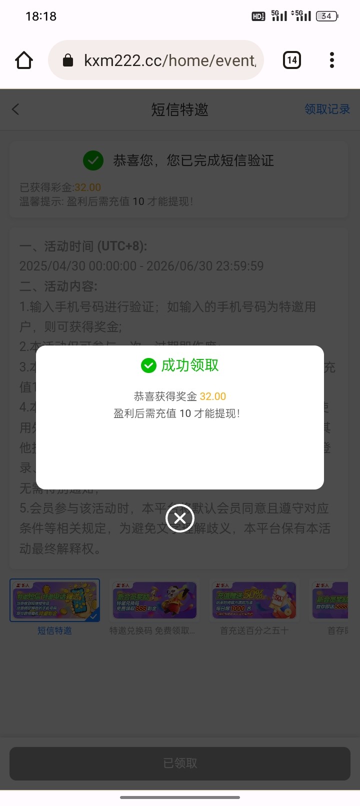 短信特邀,在优惠中心手动申请。出款要充10块才能激活出款,仅限分享。风险治理,也可以拿来当欢乐斗打