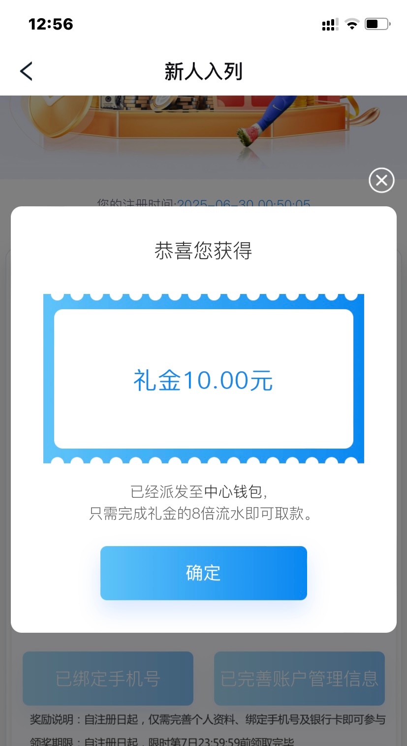 注册活动里自助领取10